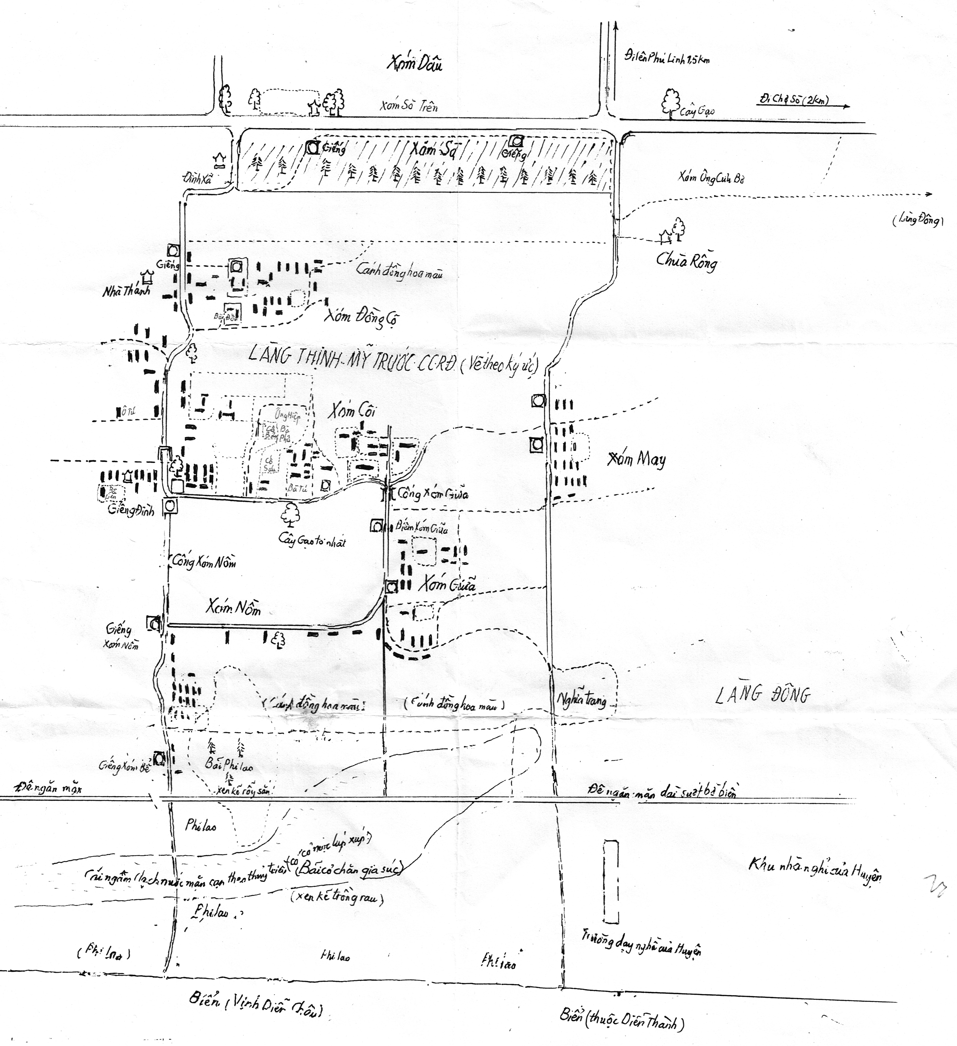 Làng Thịnh Mỹ ngày xưa (bản đồ vẽ theo ký ức của Cao Xuân Thự)
